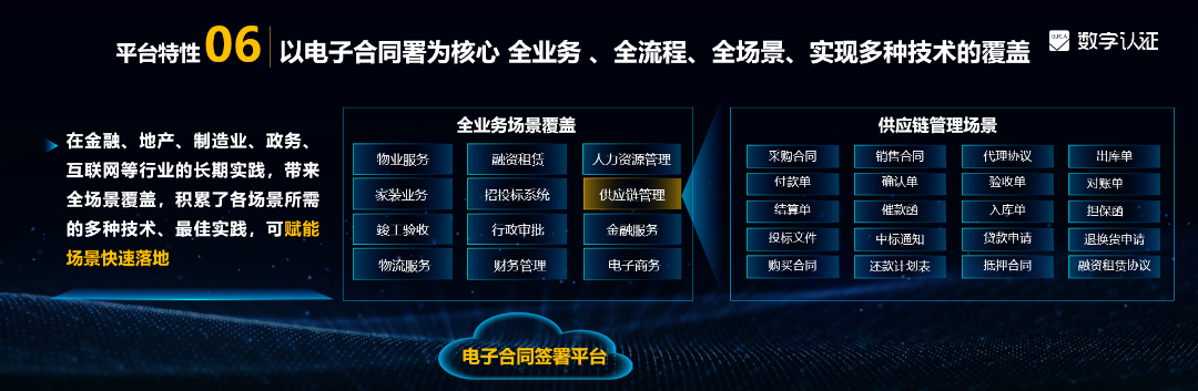 特性六:以电子合同签署为核心 实现全业务、全流程、全场景多种技术的覆盖