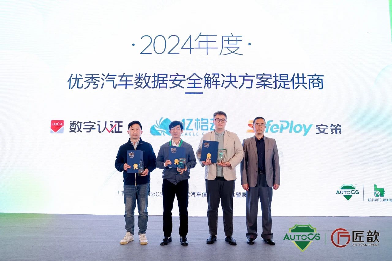喜讯!数字认证荣获“2024年度优秀汽车数据安全解决方案提供商”